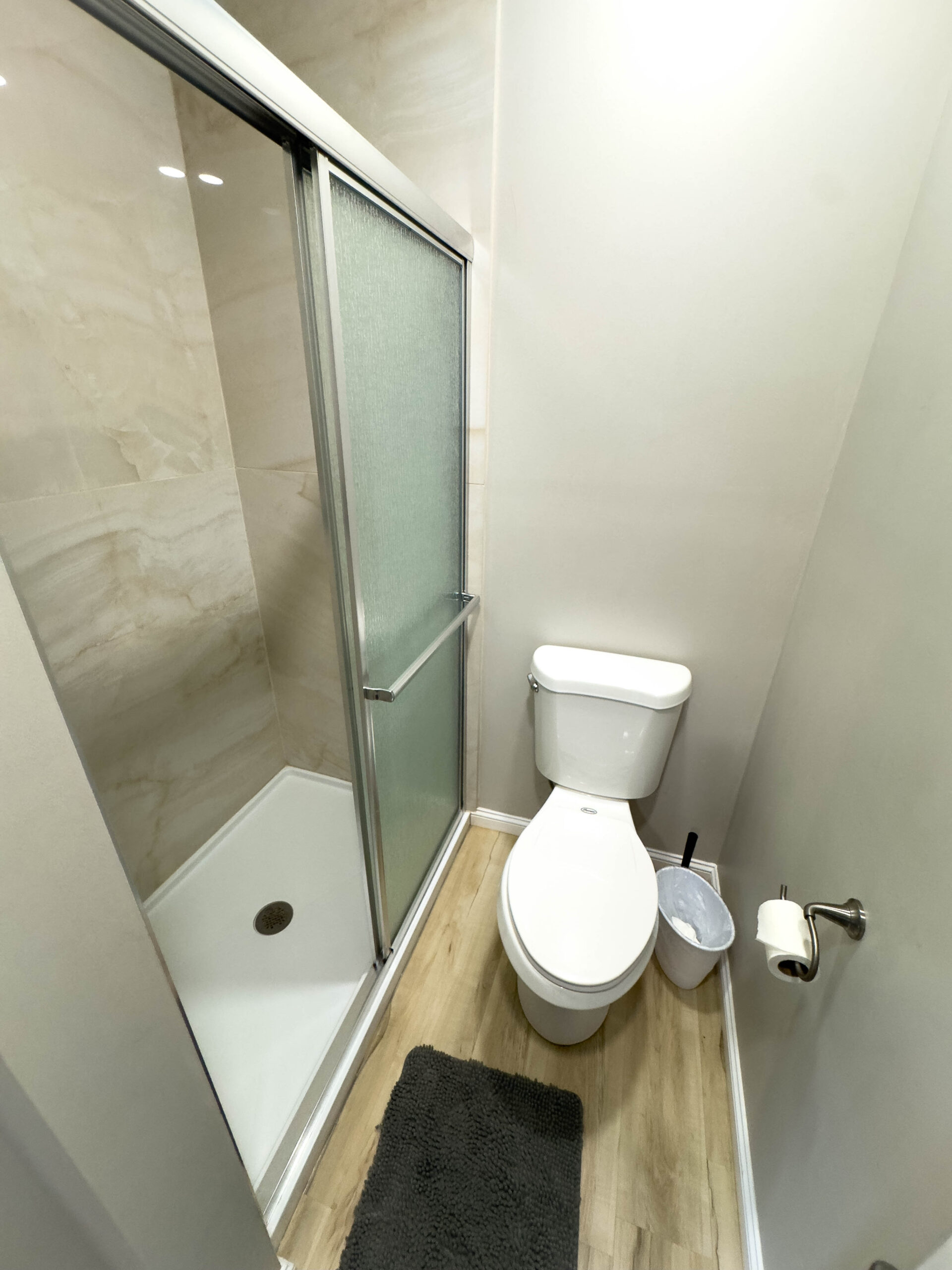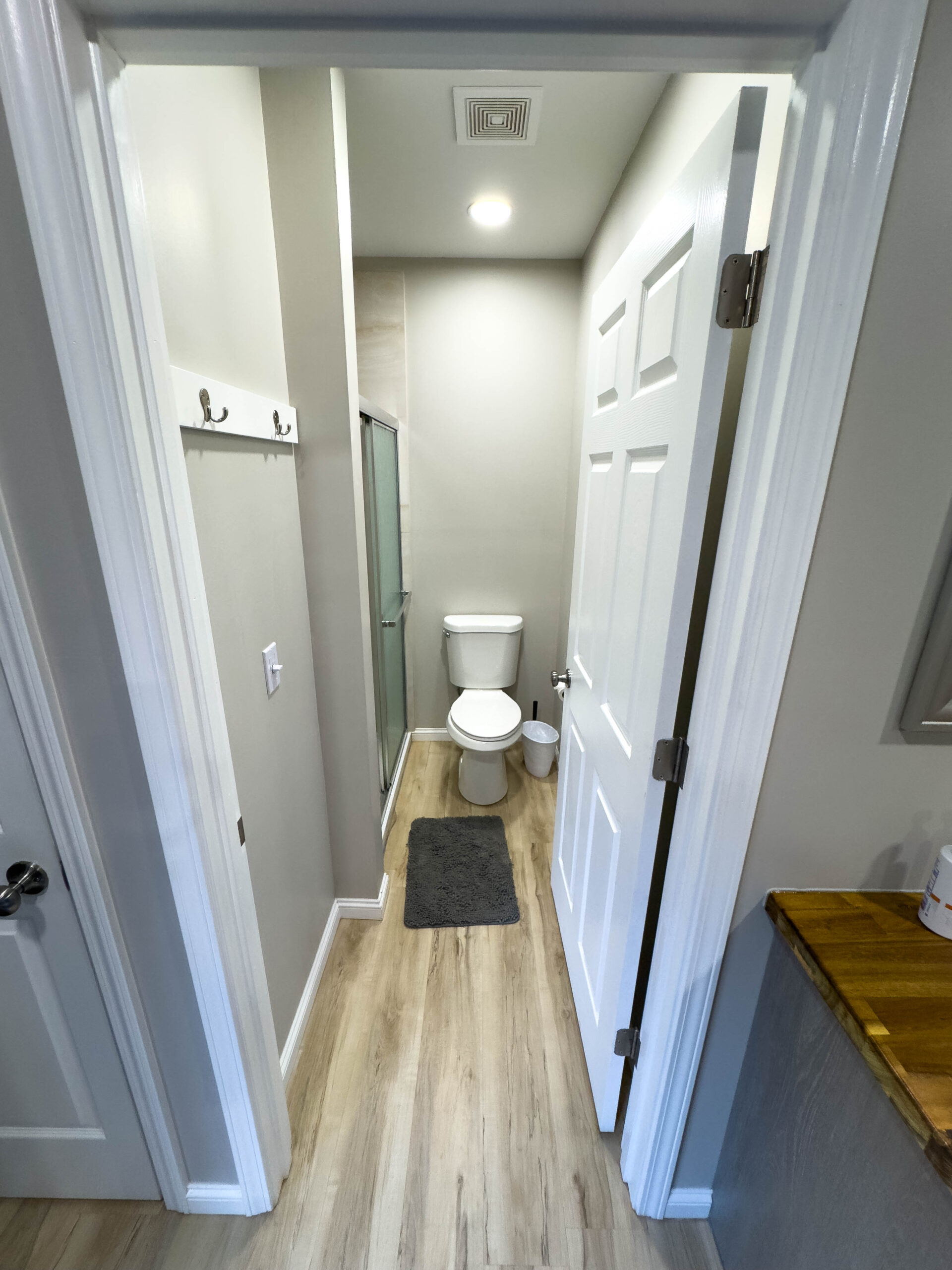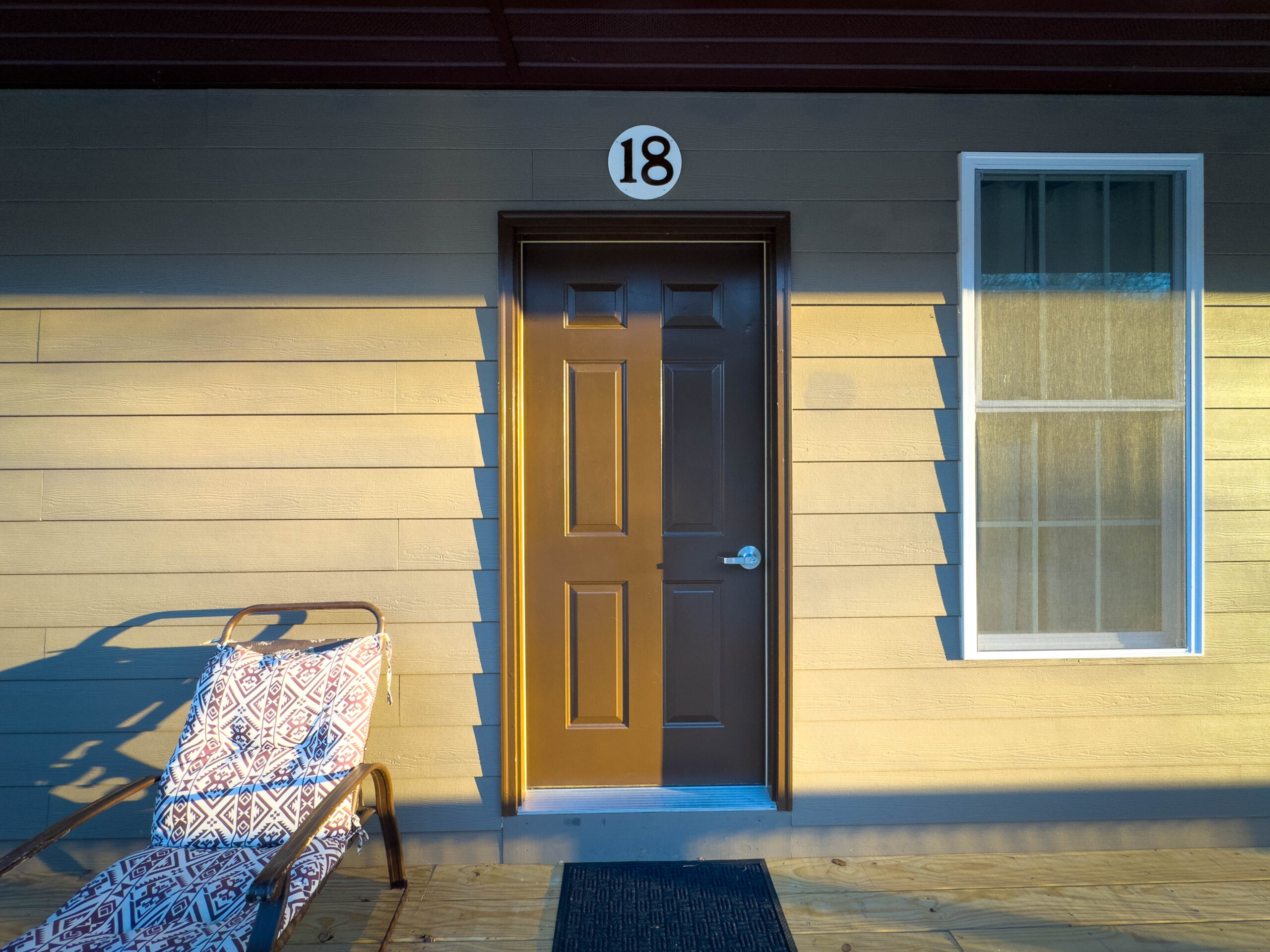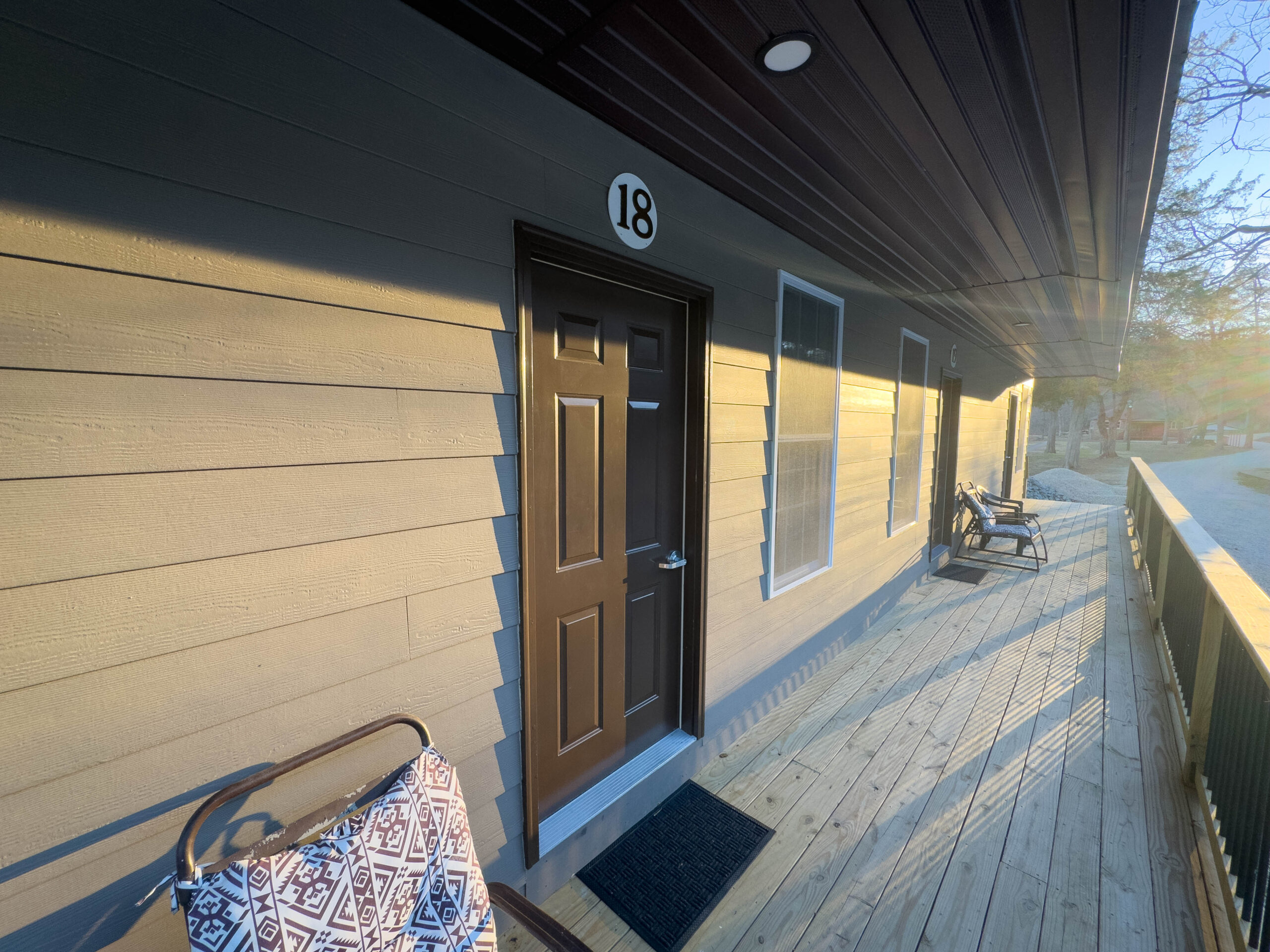 As part of a four-cabin building, Cabin 18 provides a quiet and comfortable retreat with convenient access to camp amenities. Inside, guests will enjoy year-round heating and cooling, a private bathroom with shower, and thoughtfully designed storage, including a small closet with shelving.