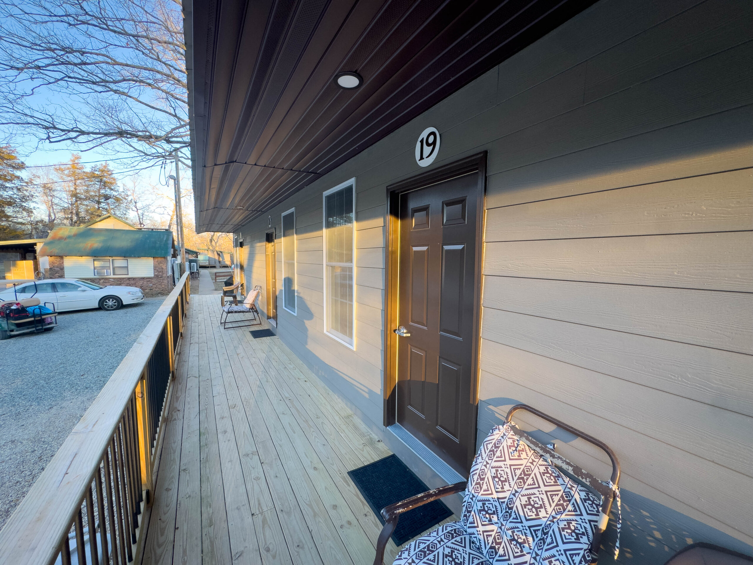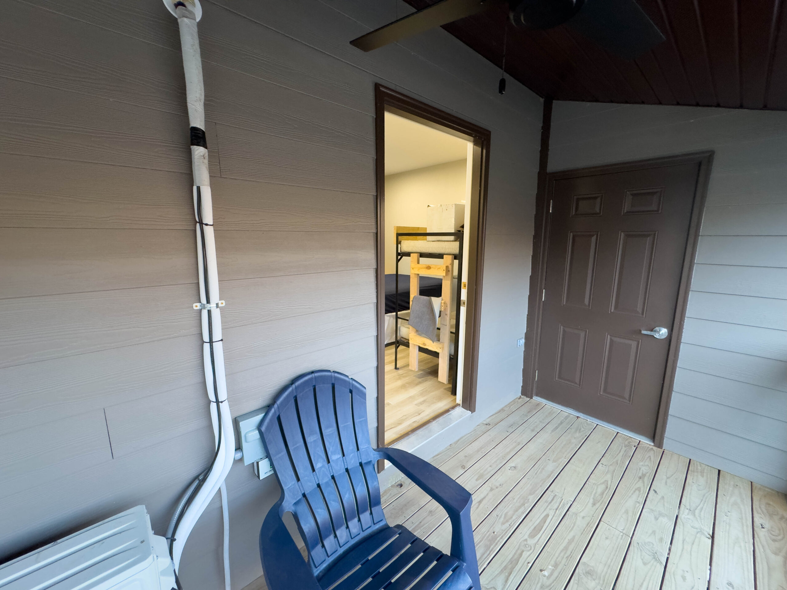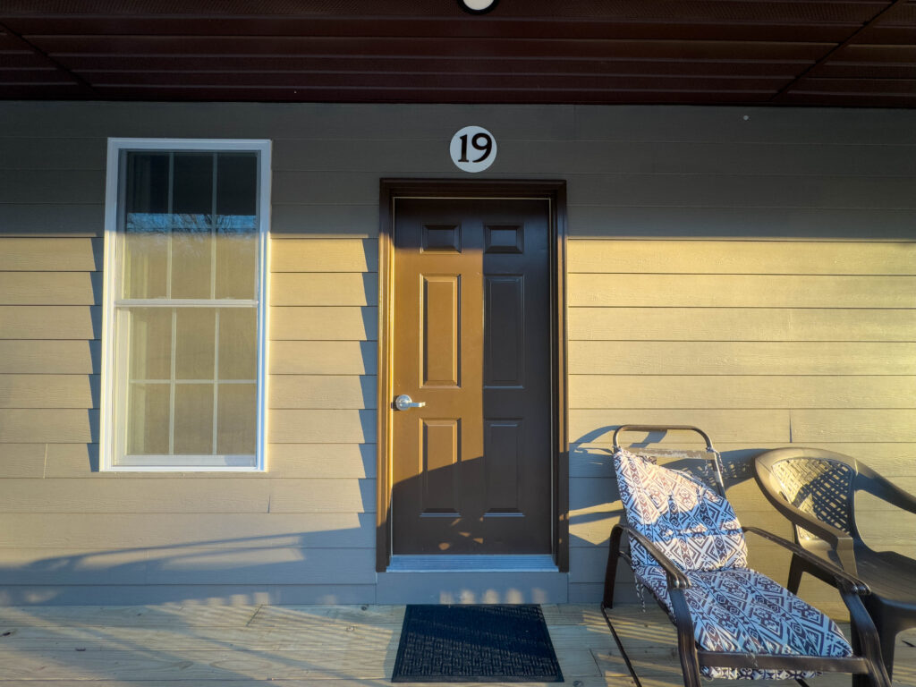 As part of a four-cabin building, Cabin 19 provides a quiet and comfortable retreat with convenient access to camp amenities. Inside, guests will enjoy year-round heating and cooling, a private bathroom with shower, and thoughtfully designed storage, including a small closet with shelving.