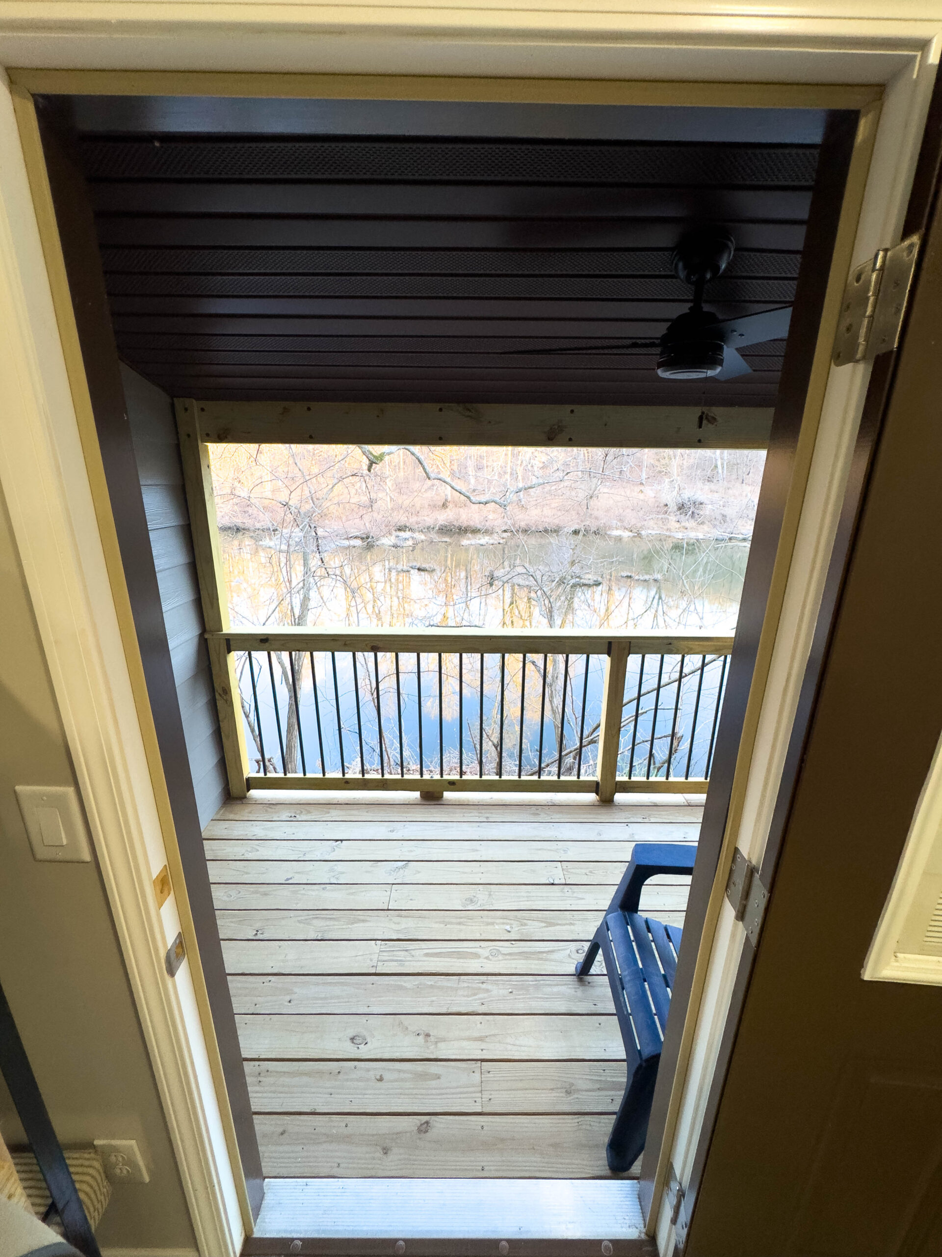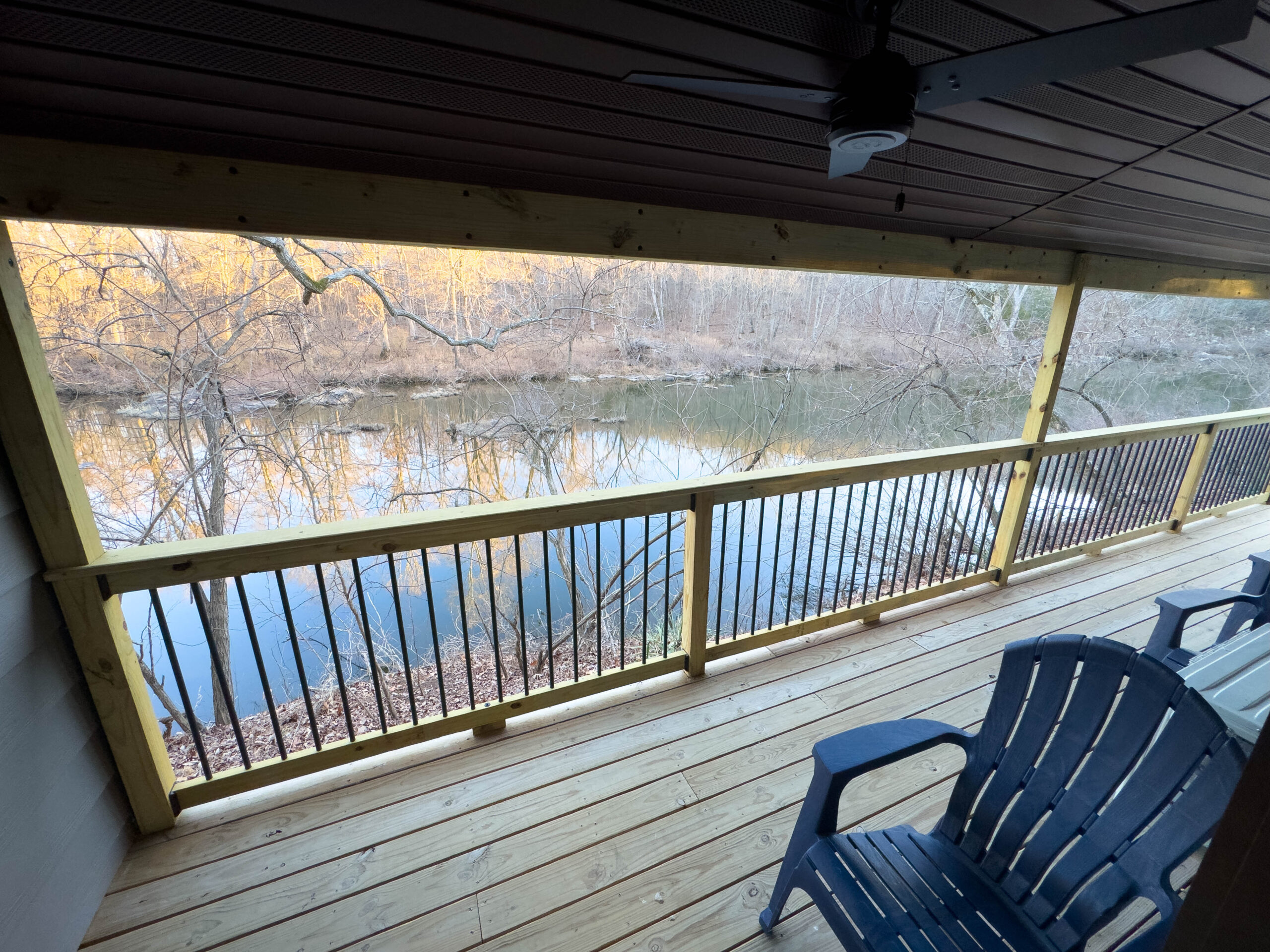 • Rear door access to deck facing Stouts’ Creek