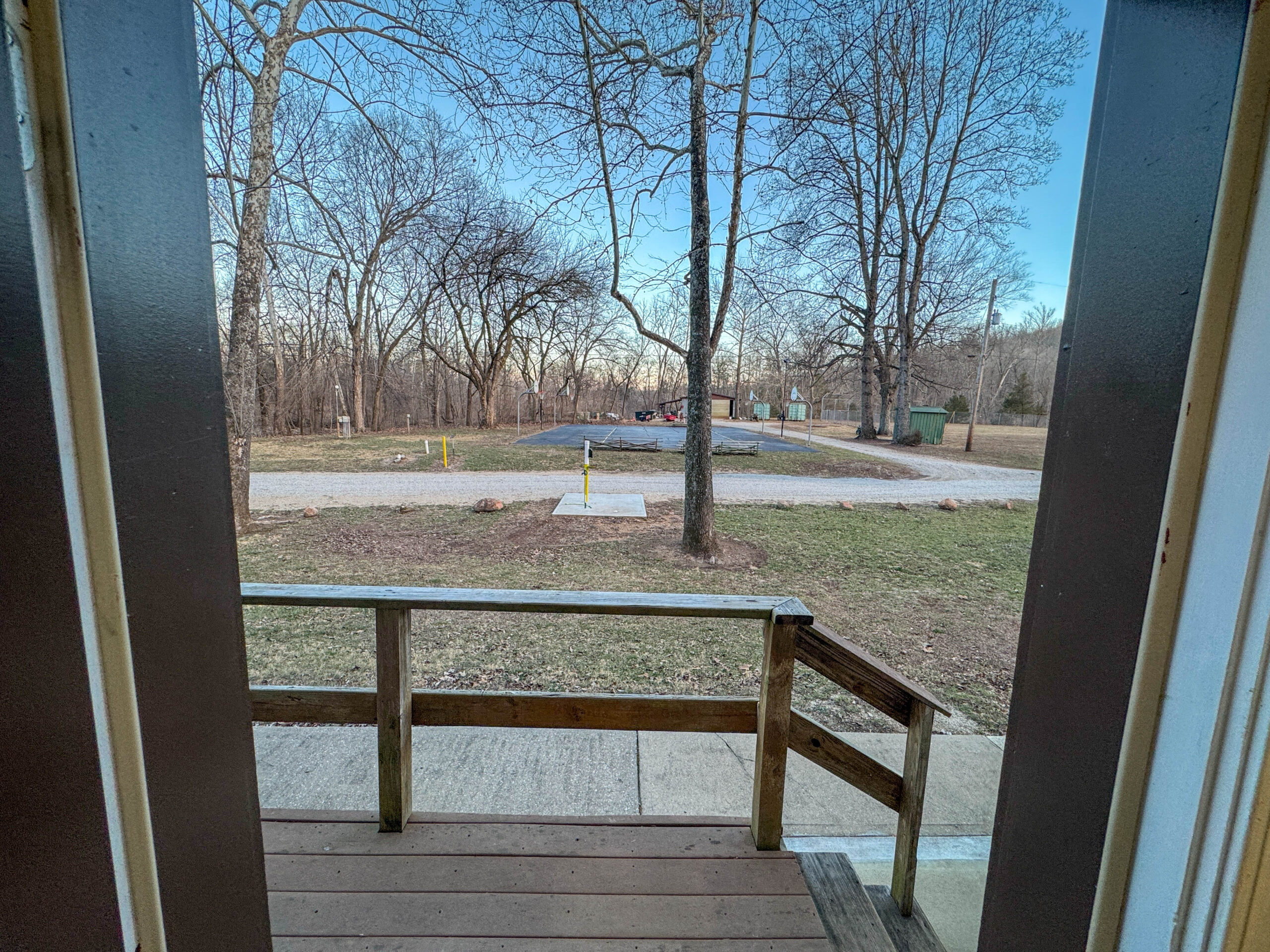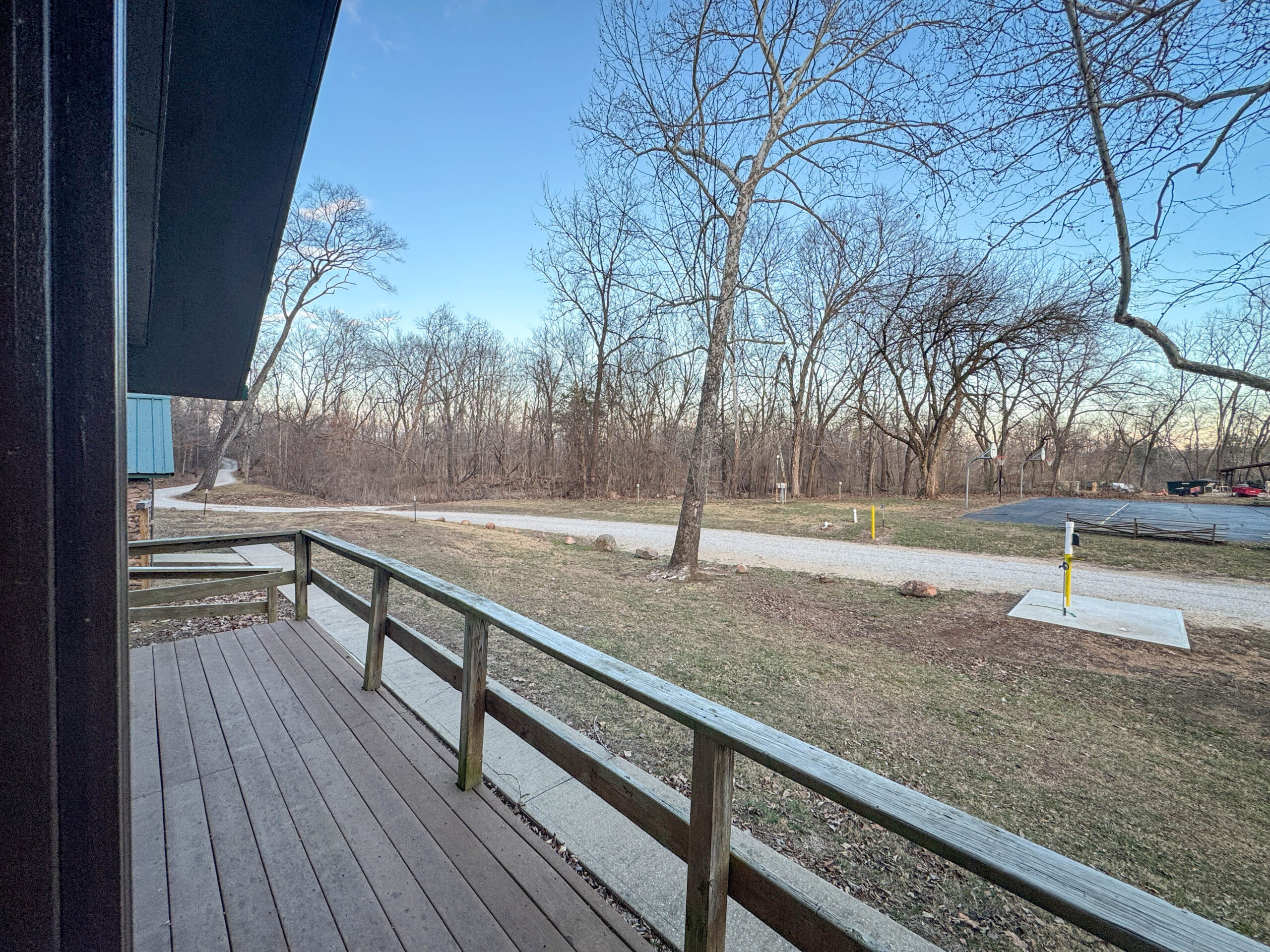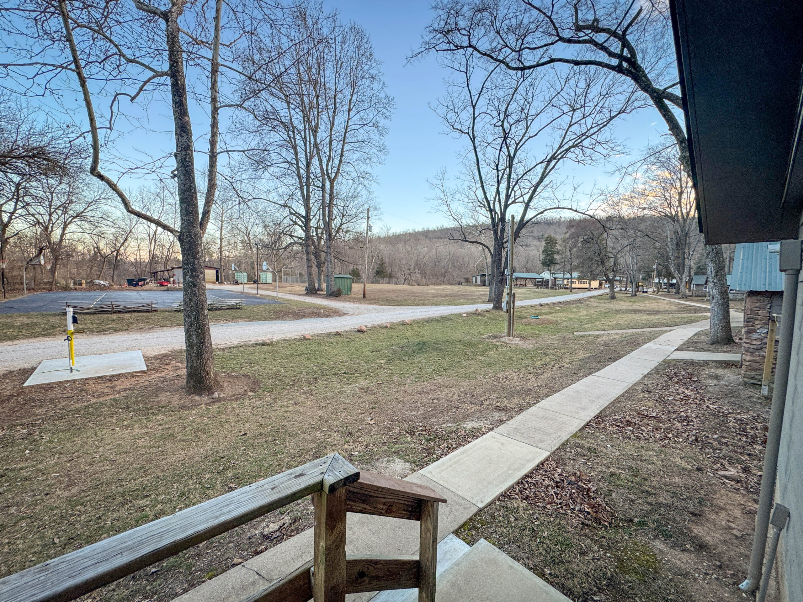 Directly across the road from the volleyball/basketball court